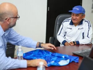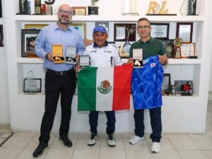 León, Gto., 27 de febrero de 2026.- Isaac Piña Valdivia, director general de la Comisión Municipal del Deporte de León (COMUDE León), felicitó al deportista leonés Juan Velázquez Sandoval, quien destacó en los Open Masters Games 2026 en Abu Dabi.