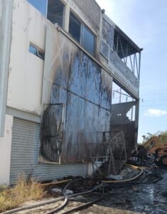 El techo de la estructura colapsó, lo que impide el ingreso del personal a la parte posterior del inmueble debido al alto riesgo de derrumbe. Se calcula que unas 500 toneladas de pedacera de material permanecen en combustión, mientras Obras Públicas y maquinaria particular remueven los desechos para sofocar los puntos activos.