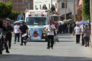 Silao, Gto., 11 de abril de 2026.— Entre sirenas, lágrimas y muestras de respeto, autoridades municipales y cuerpos de emergencia despidieron al bombero, paramédico y rescatista Mario Cardoso Abundes.