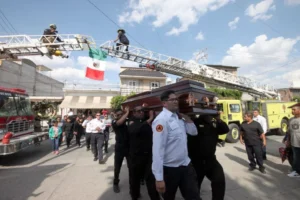 Posteriormente, en el Cuartel de Bomberos, se realizó el último pase de lista y una misa de cuerpo presente. Después, el cortejo fúnebre recorrió calles principales escoltado por elementos de Protección Civil, Bomberos y Policía Municipal.