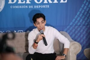 León, Gto. 07 de noviembre del 2025.- Humilde, seguro y feliz. De suéter blanco y pantalón negro, así de sencillo como su propia personalidad, el mejor patinador de México Donovan Daniel Carrillo Suazo, llegó a Guanajuato para inspirar, motivar y hablar de su trayectoria deportiva en el Congreso Internacional de Deporte 2025 ante 800 asistentes de diferentes generaciones y profesiones.